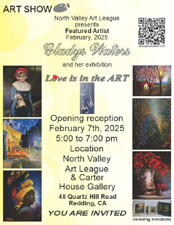 To by products with my paintings please go to: I am consistently  proud to be  one of the artists  at the Redding  City Hall Art Exhibition .  From January  31st,  2025,  through December  31st, 2025